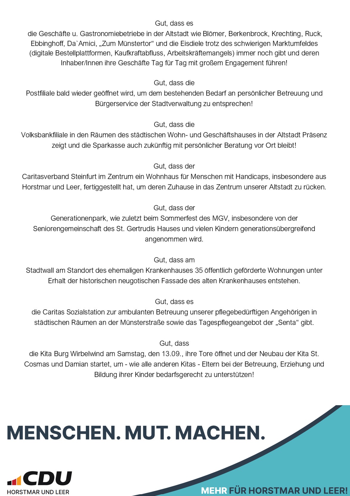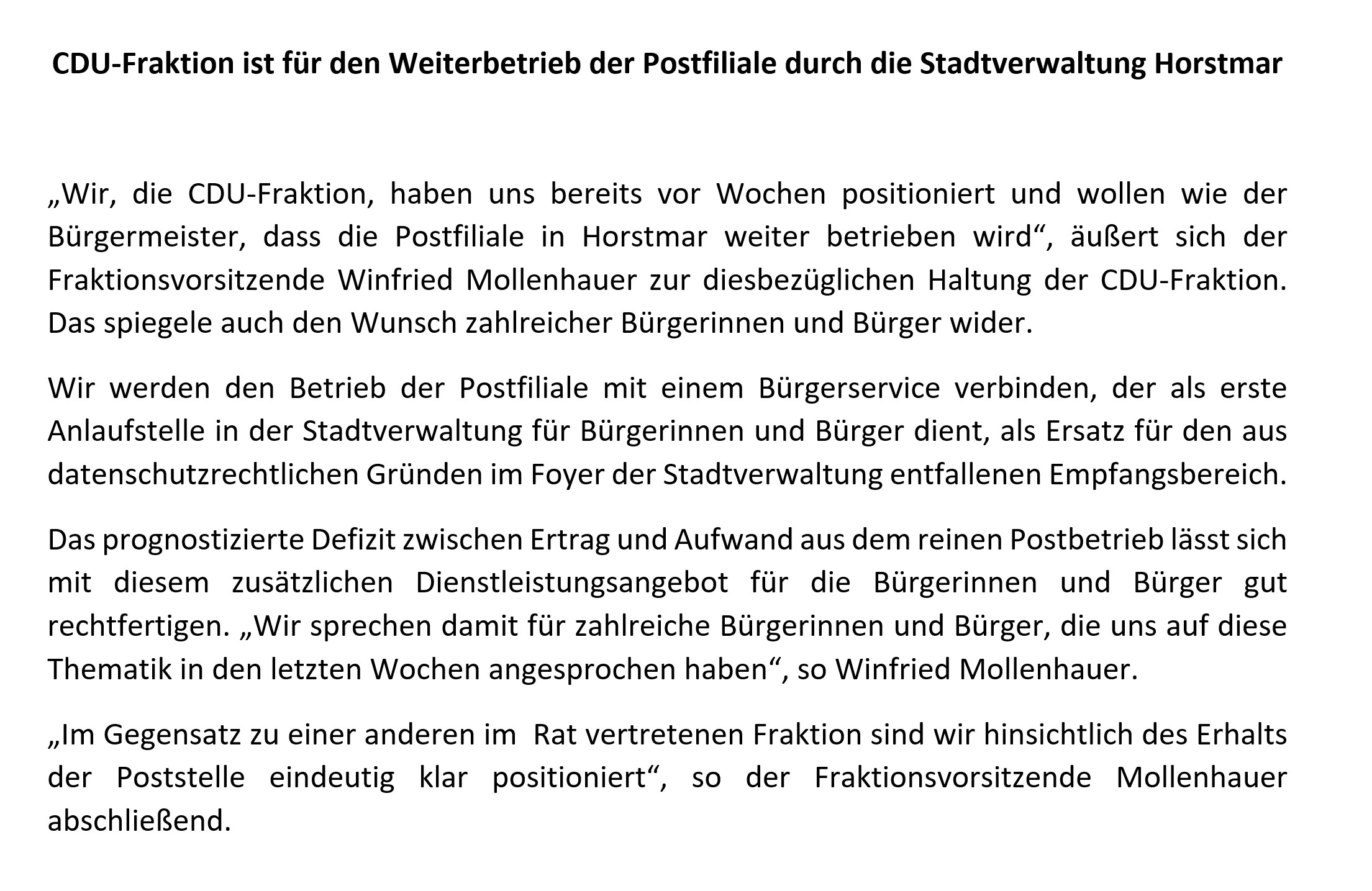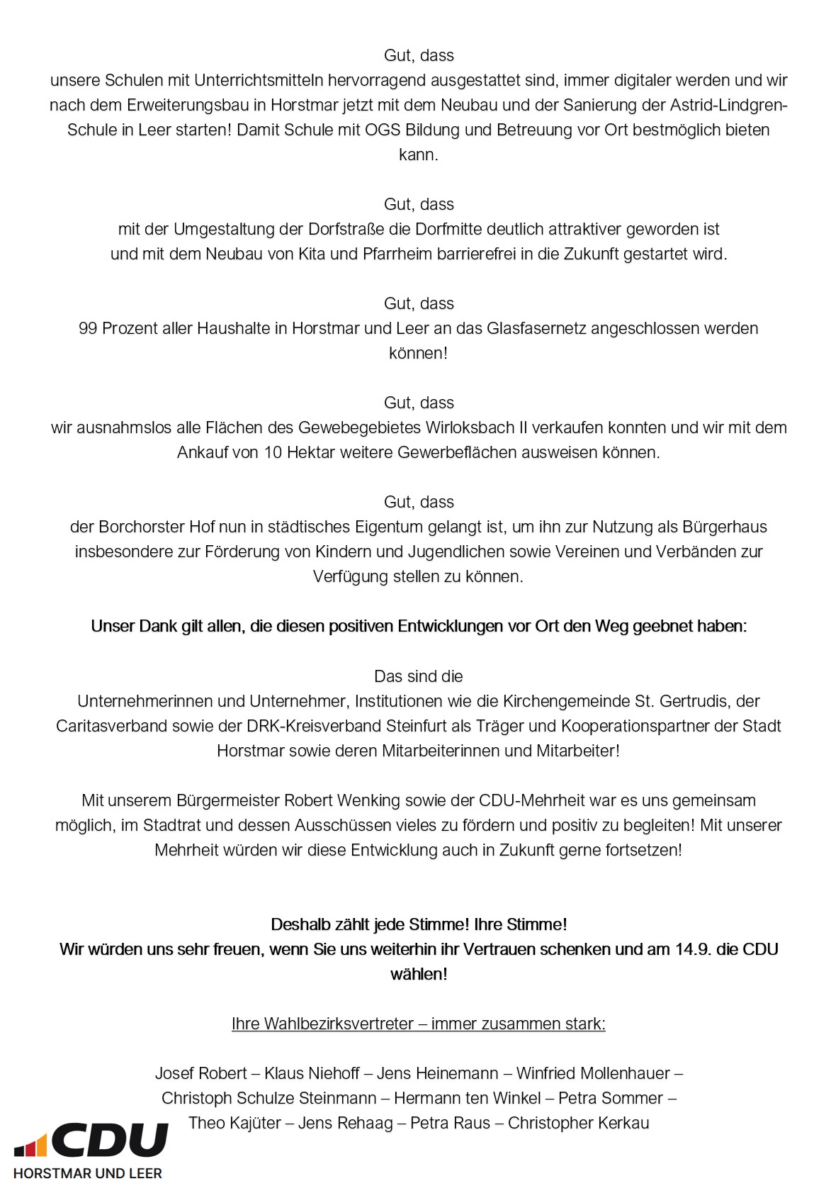 Die beiden CDU-Ortsverbände, der CDU- Stadtverband und die CDU-Fraktion im Rat der Stadt Horstmar freuen sich,